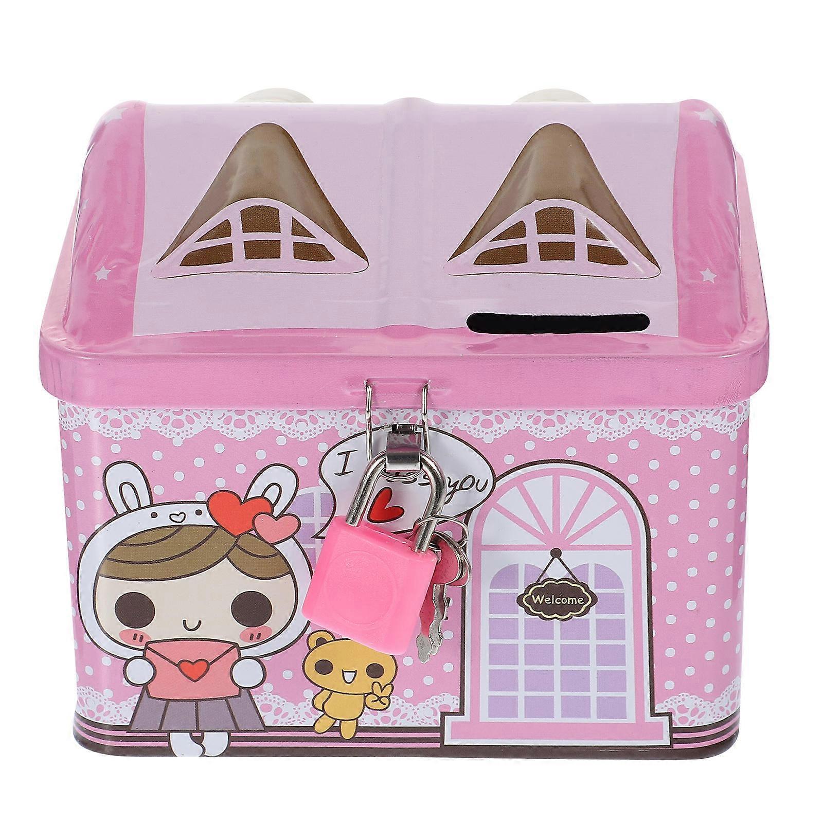 Kids Safe Bank Cartoon Money Saving Bank with Lock for Girls Home Decoration 12.00X10.00X9.50CM Pink 1Pcs