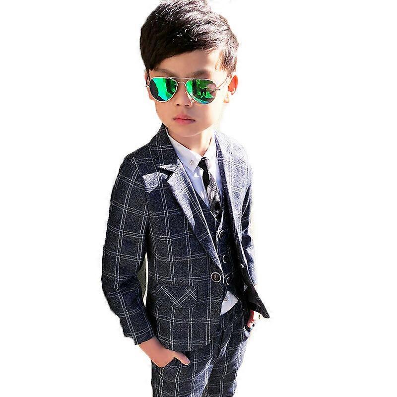 Boys Plaid Suits 5 Pieces Set, Blazers Vests Pants Shirts Ties