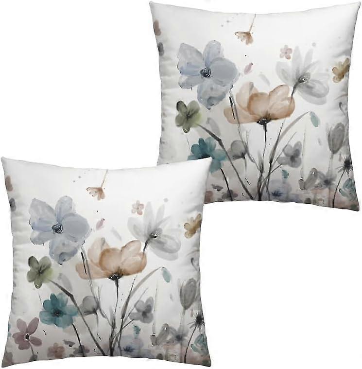 Brown Cream Grey Teal Floral Pillow Cover 20x20 Inch Watercolor Flowers Decorative Throw Pillow Covers Set of 2 Rustic Abstract Art Flower Modern Pill