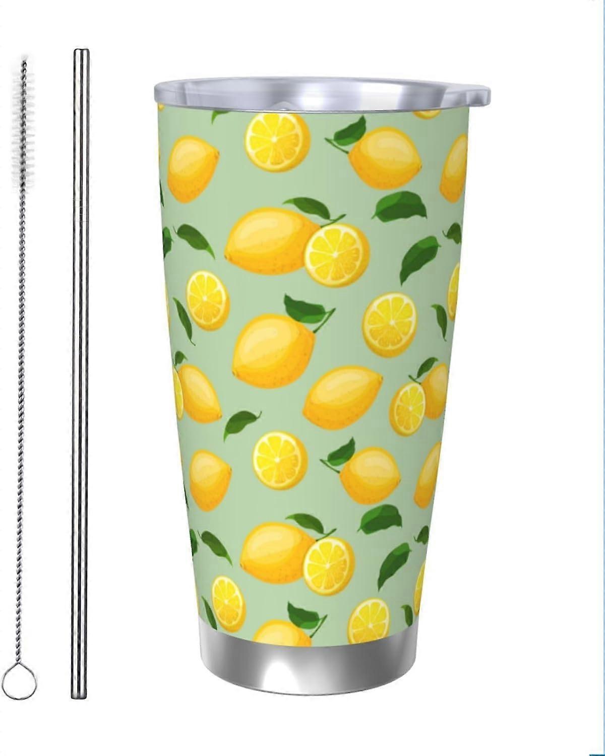 Lemon Tumbler 20oz Fruit Stainless Steel Vacuum Insulated Tumblers with Lid and Straw Green Travel Coffee Mug Tea Wine Cups Water Bottle Gifts for Wom