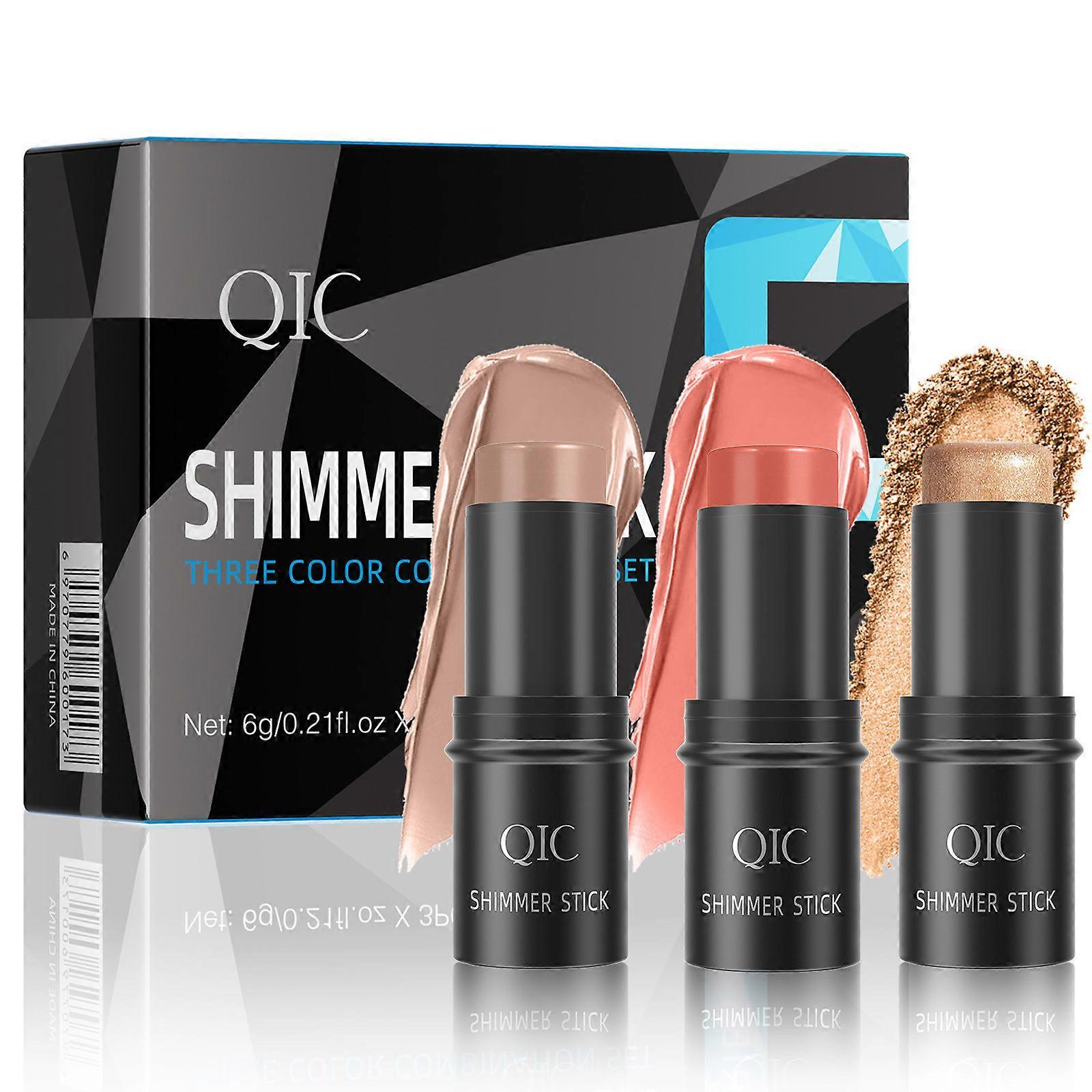 High Gloss Powder Blusher Repair Stick 3-piece Set Box Facial High Gloss Stick Powder Blusher Cream Makeup Set