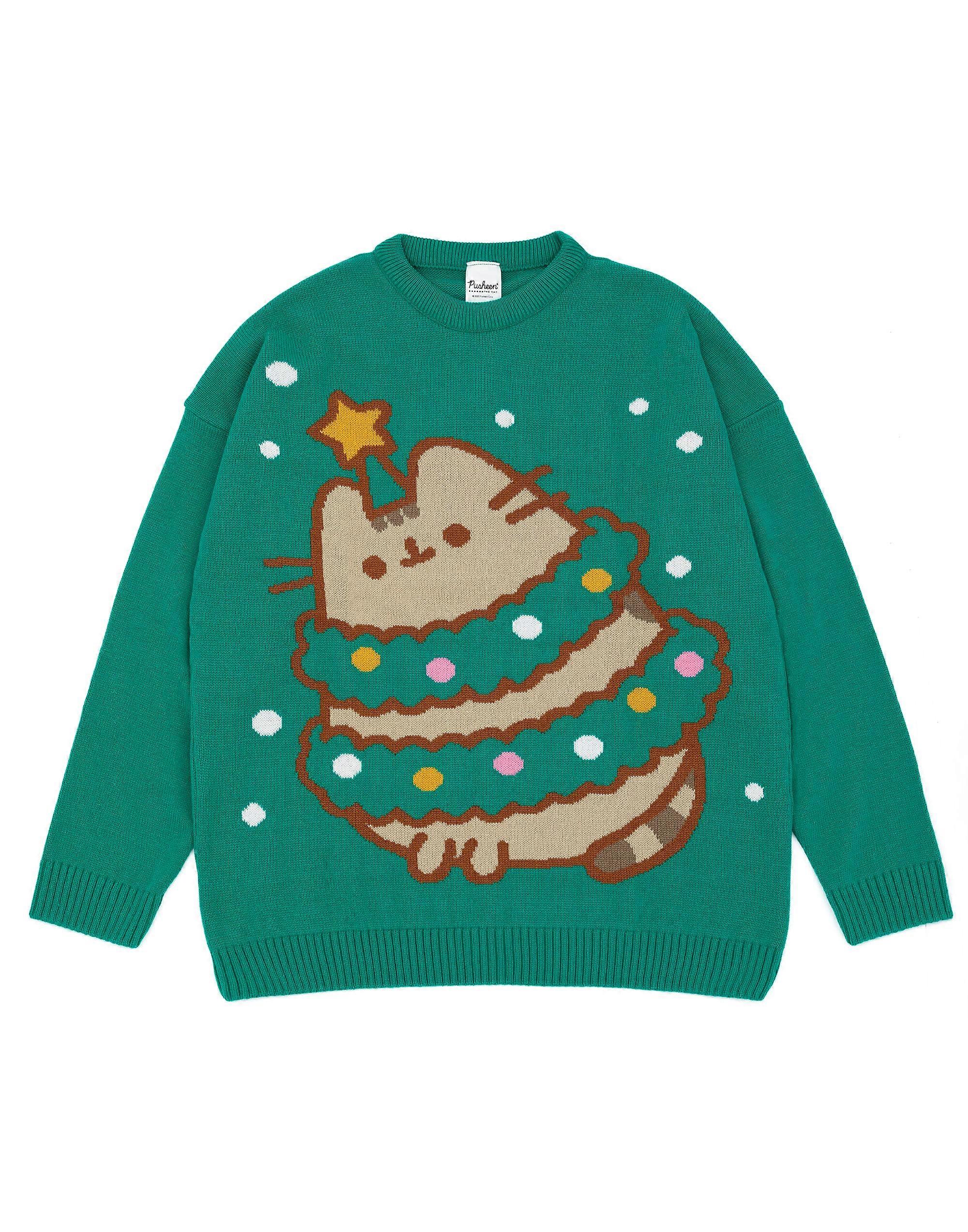 Pusheen Womens Christmas Jumper Green Christmas Tree