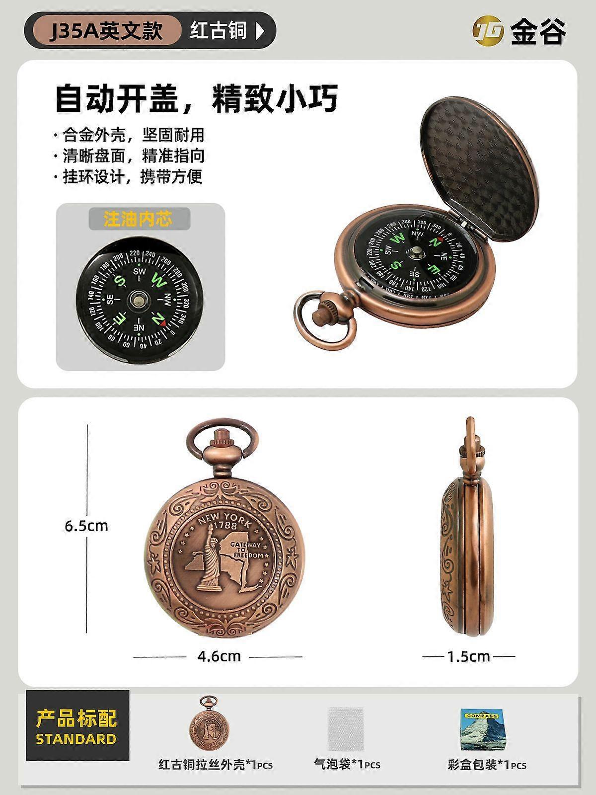 Description This vintage pocket watch compass combines timeless design with practical functionality, making it an ideal accessory for outdoor enthusiasts. Its intricate metal craftsmanship and retro aesthetic evoke nostalgia while providing reliable navigation for hiking, camping, and survival adventures. Compact and portable, it fits seamlessly into your outdoor gear. Features -Color:Multi -Material:Zinc alloy -Size:6.50X4.60X1.50cm/2.55X1.81X0.59in -Vintage design appeal: the retro pocket watch compass combines timeless vintage aesthetics with modern craftsmanship, making it a stylish accessory for outdoor enthusiasts -Highprecision navigation: equipped with a highly accurate compass, this vintage compass allows you stay on track during hiking, camping, or other outdoor adventures -Compact and portable: its lightweight and pocketsized design make it easy to carry, allowing you have reliable navigation assistance wherever you go -Zinc alloy construction: made of wearresistant zinc alloy material, this pocket compass is built to withstand rugged outdoor conditions and longterm use -Versatile outdoor companion: perfect for camping, hiking, and backpacking, this compass is an essential tool for explorers and adventurers alikePackage list: 1 x retro compass