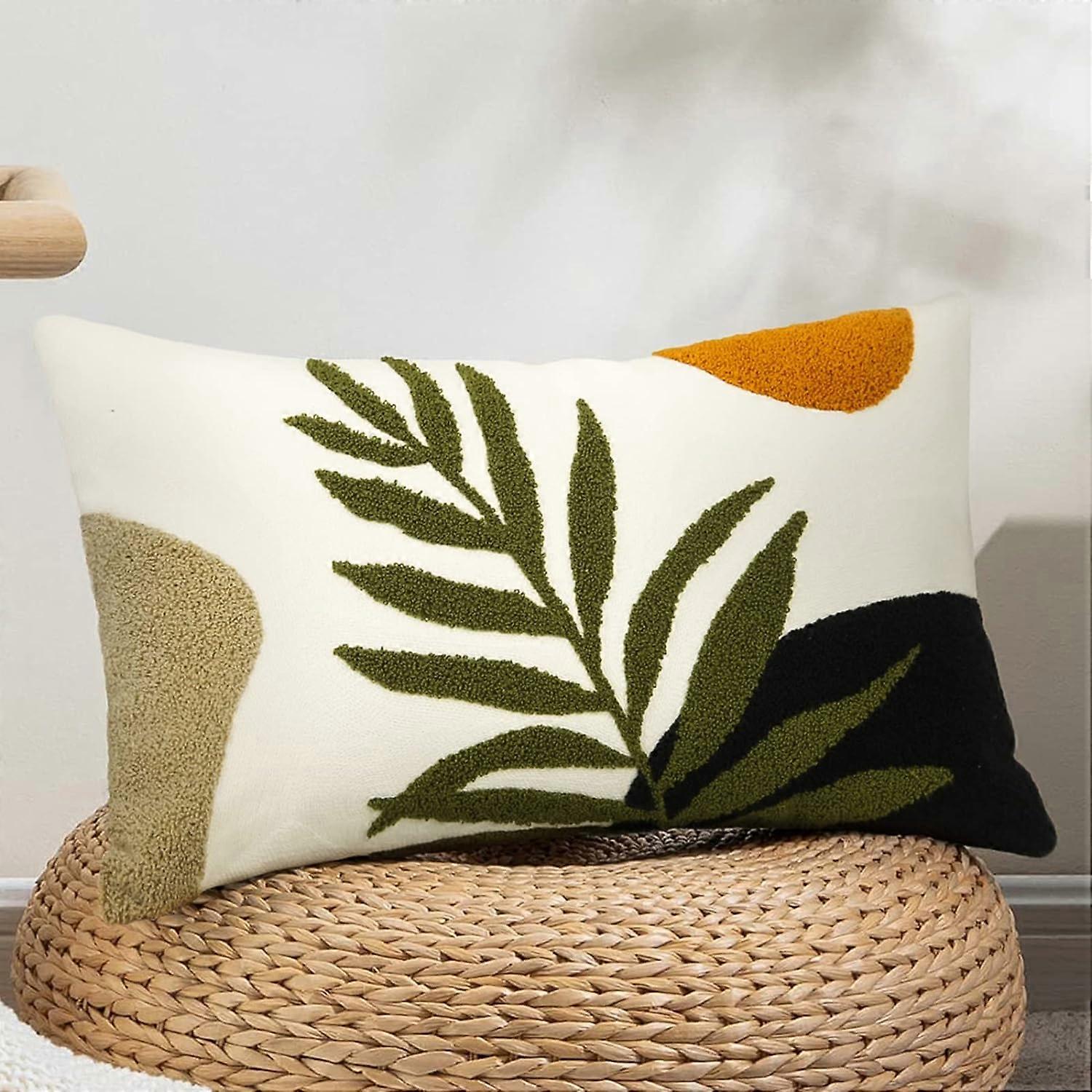Boho Lumbar Throw Pillow Covers 12x20 Tufted Abstract Mid Century Modern Pillowcases Bohemian Aesthetic Decorative Pillows (1PC,Green and Black)