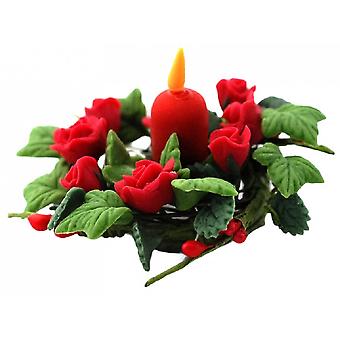 بيت الدمى الورود الحمراء الجدول إكليل & شمعة مصغرة عيد الميلاد تناول الطعام التبعي