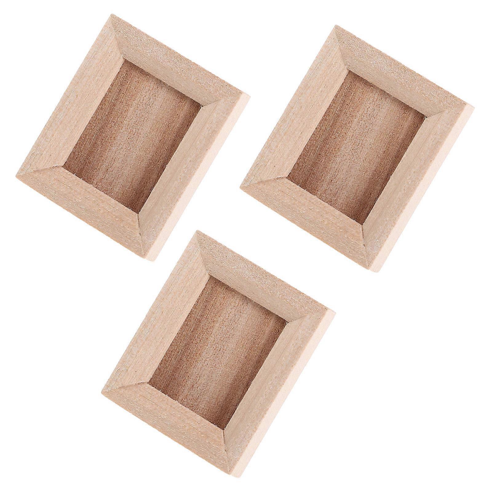 Doll House Miniature Wooden Picture Frames for Decoration Beige Color 3pcs