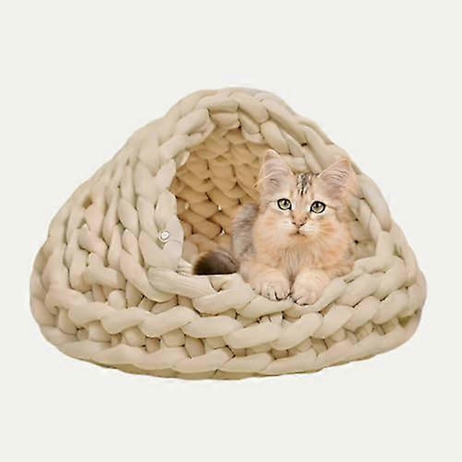 Hand-Woven Felt Cat Bed House – Cozy & Warm Winter Cave Mat for Cats & Kittens, Premium Indoor Comfort