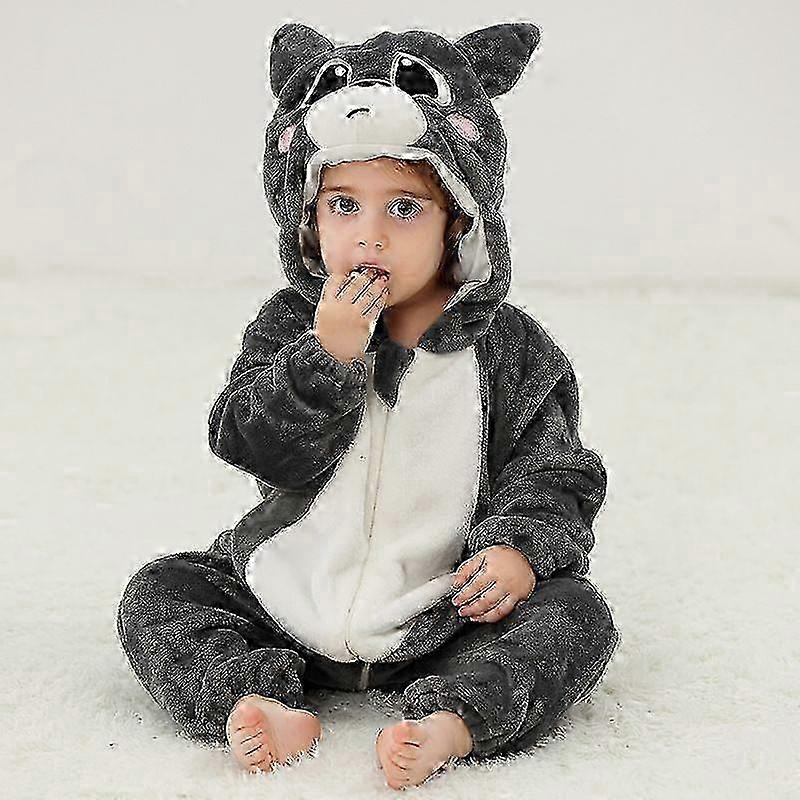 Grey Cat One-Pieces Pajamas for Kids Toddlers Flannel Animal Kigurumi Pajamas
