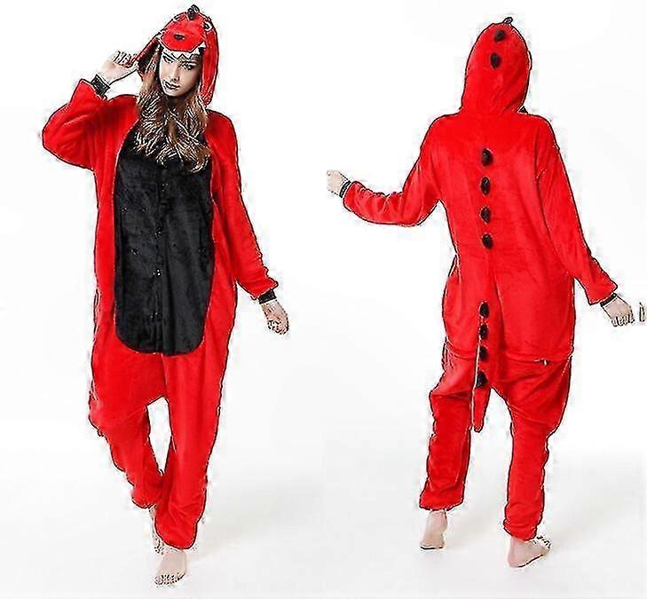 Red Dinosaur Onesie Adult Flannel Pajamas, Animal Cosplay Costume