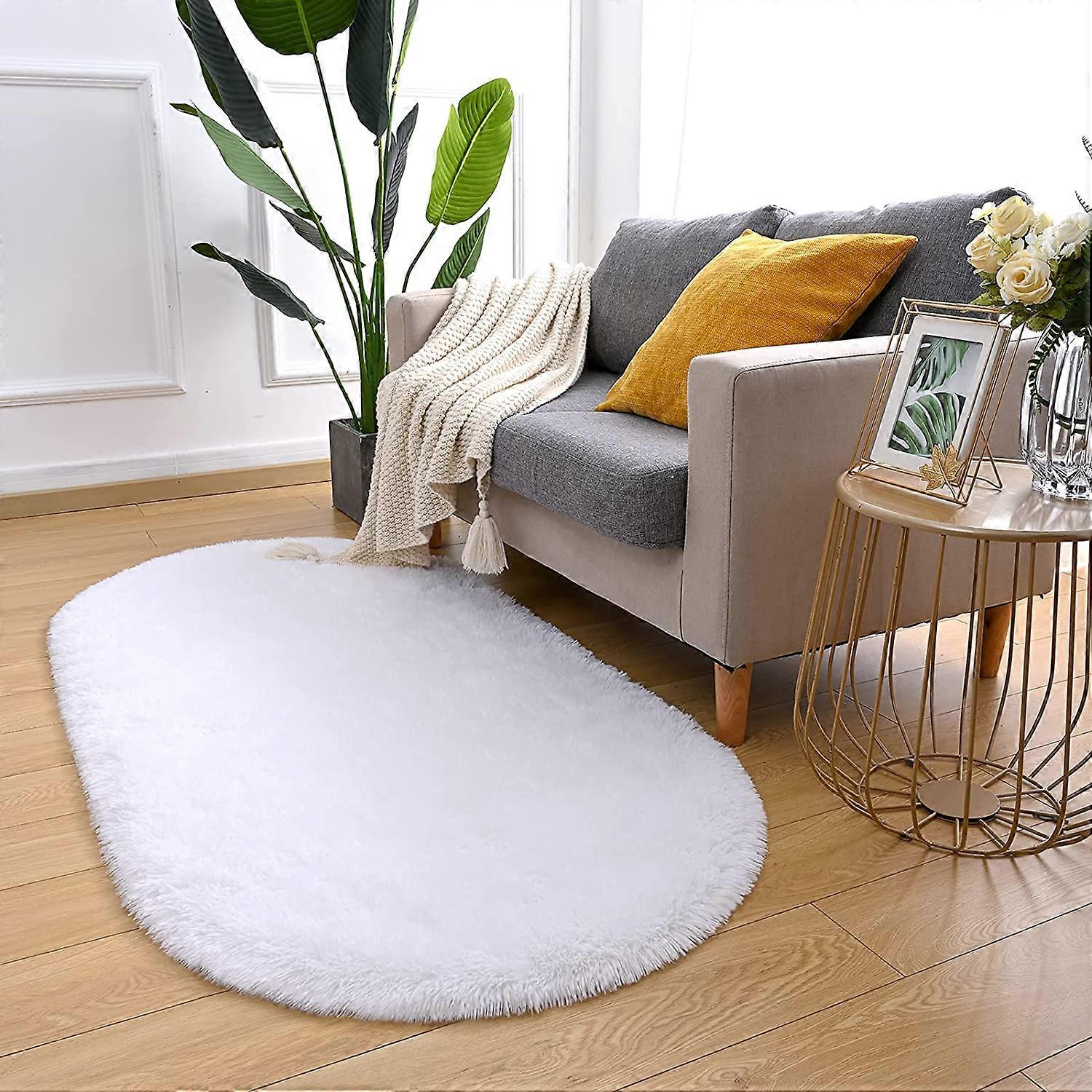 Oval Plush Carpet Soft Shaggy Rug for Kids Children Bedroom Living Room Furry Non-slip Bedroom Mats Home Decoration