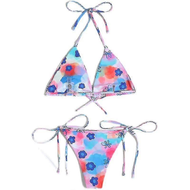 Bikini Floral Print Lace-up Backless Sexy Bikini Swimsuit