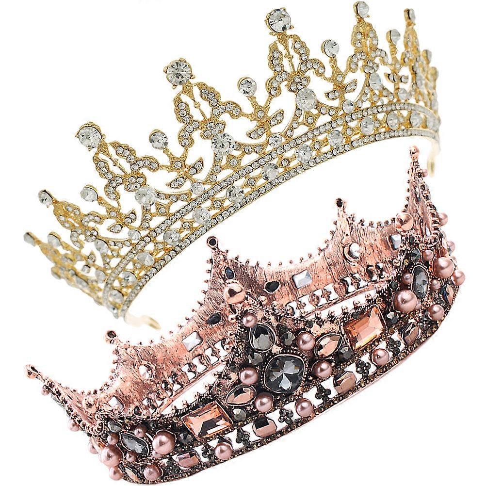 Wedding Crown Bride Headband Bridal Tiara Rhinestone Vintage Accessory 2Pcs