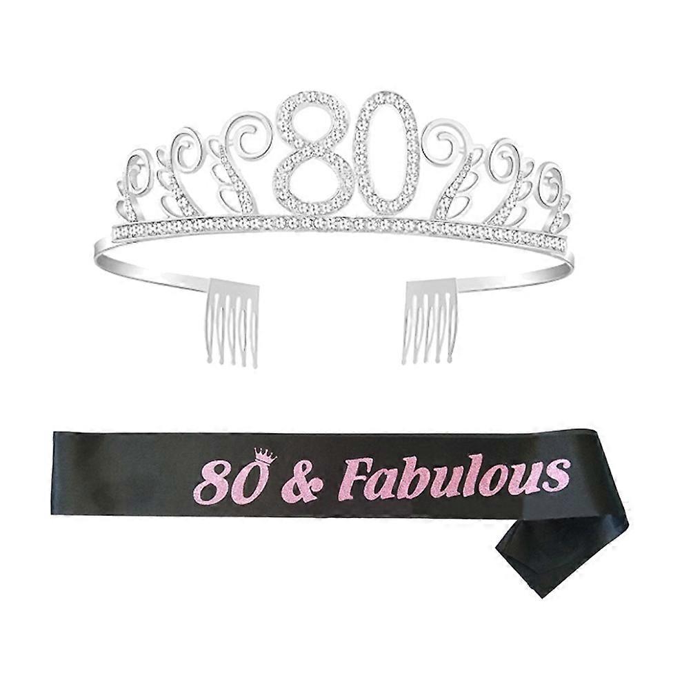 Birthday Crown Tiara And Sash Decoration For Women Celebratory Occasions Regal Style 1 Set