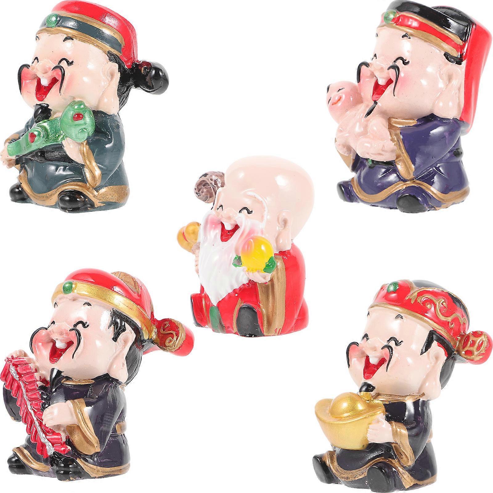 Indoor Showpiece Chinese Decor Resin Craft Fortune God Statue Home Decoration Assorted Color 6x4x3.5cm Good Luck 5Pcs