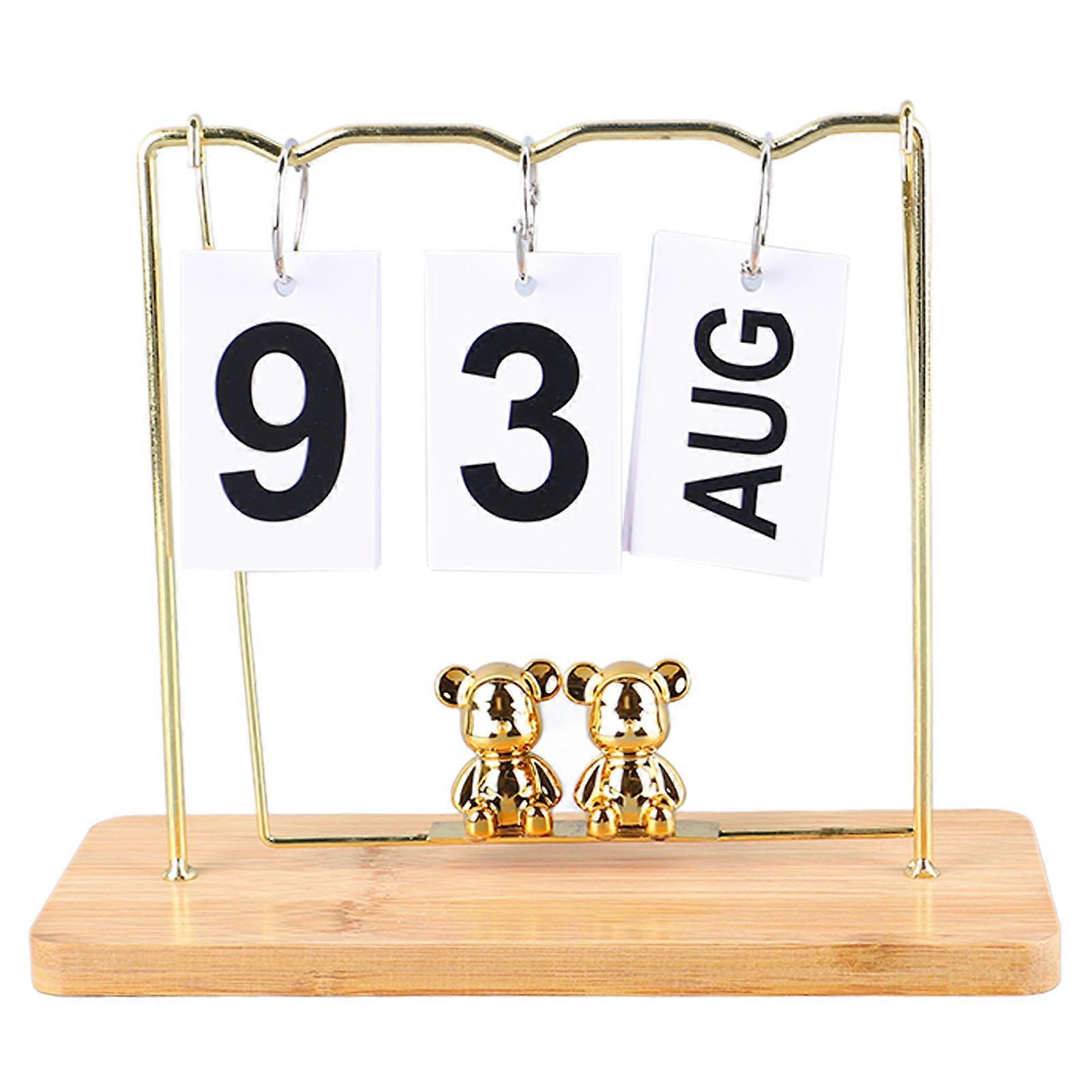 Bear Wooden Metal Flip Calendar Daily Flip Calendar Reusable Perpetual Calendar Desktop Flip Calendar for Office Dormitory Wood Color Swing