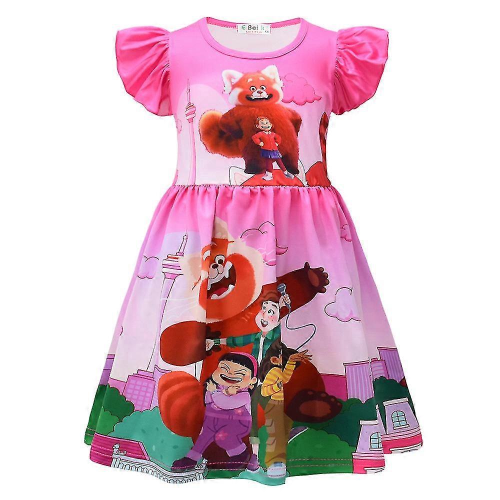 Turning Red Girls Ruffle Sleeve A-line Swing Dress Kids Party Costume Sundress