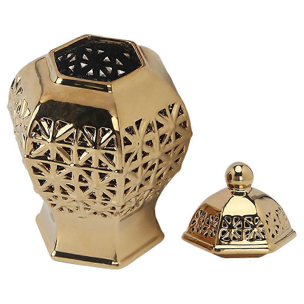 This hollow flower arrangement is made of ceramic material. Your home will be an attractive focal point, especially if you add flowers to them. The special flower Vase is the suitable shape and size to create an eye-catching vibrant display of color and also look good to place them in house or garden, balcony. Features -Color:Golden -Material:Ceramic -Size:25.00X14.00X14.00cm/9.82X5.50X5.50in - This unique design hollow vase, made of reliable ceramic material, which is for long time use. - The hollow vase can be decorated with flowers and placed on the wedding party as wedding . - Ceramic jar is perfect for various occasions, such as balcony, patio, garden, wedding decoration, etc. - The product's fine workmanship and creative retro design make it a wonderful decoration for you. - It can be a wonderful your friends or family members who love planting flowers. Package list: 1 x Ceramic Jar Decor