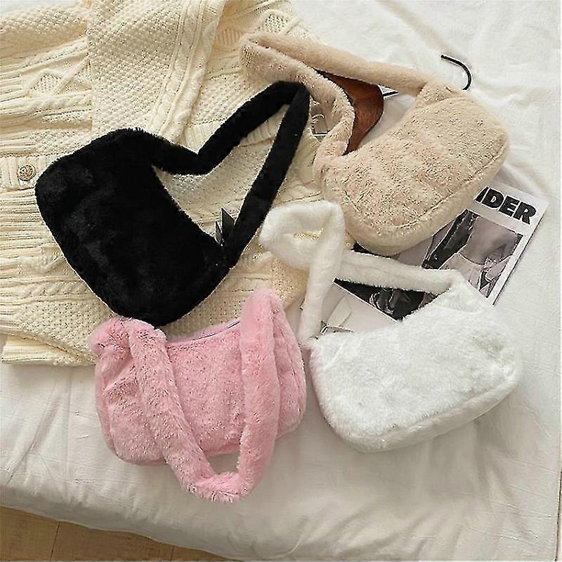 Simple Design Women Soft Plush Hobos Shoulder Bags Winter Furry Ladies Clutch Purse Handbag Fashion Female Underarm Bag
