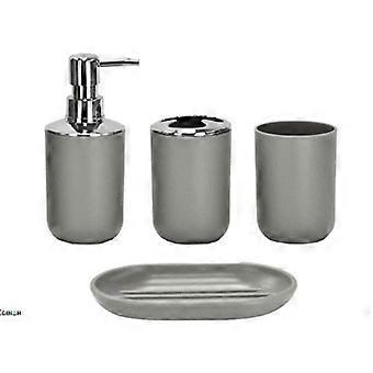 Modern Design 4 PieCes Set Of Bathroom Accessories Lotion Bottles, Toothbrush Holder, Toothcup, Soap Holder, Grey-Four