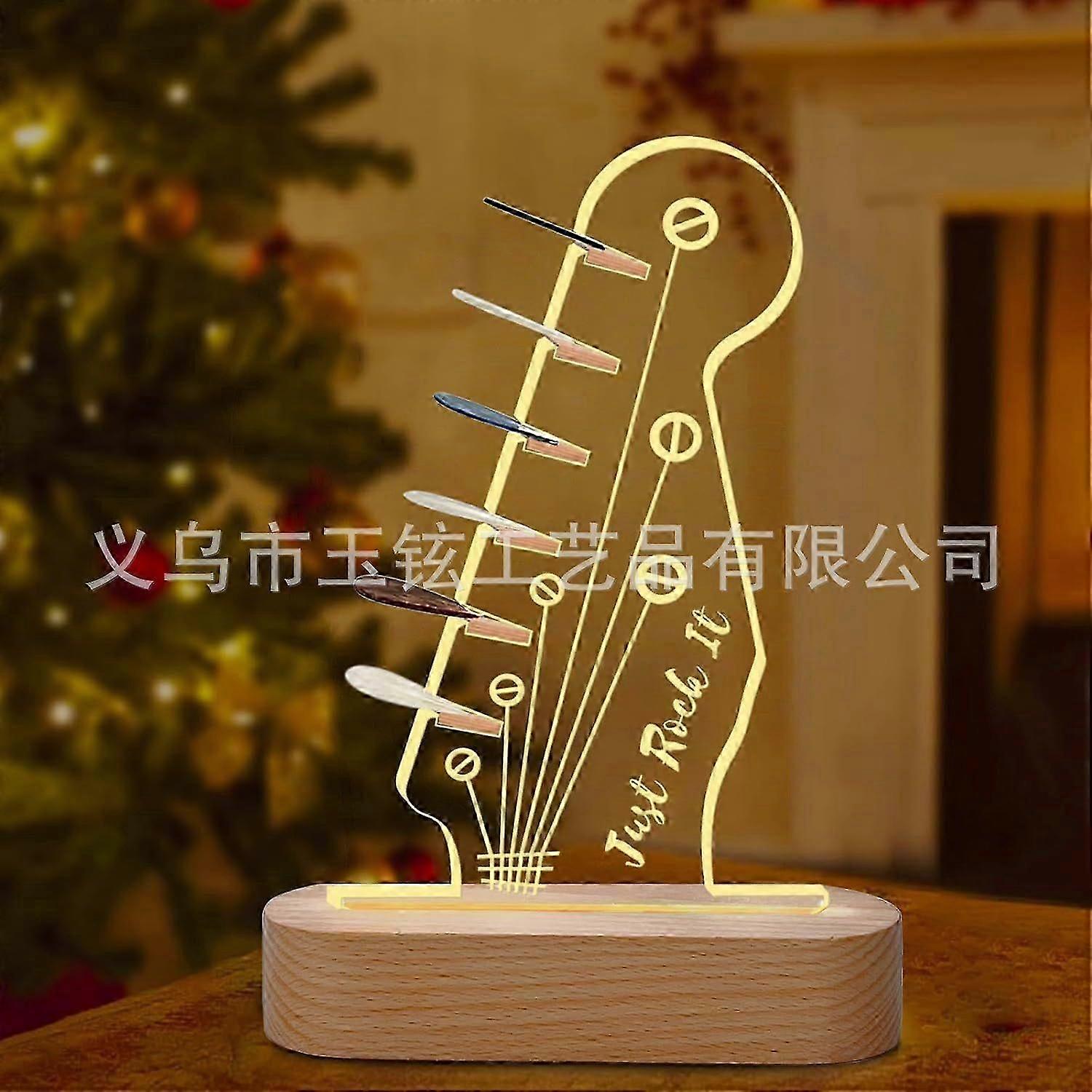 Light Up Guitar Pick Holder,Guitar Accessories Gift for Guitar Players GuitaristsAcrylic Electric Guitar Headstock Shaped Pick Holder with Wooden Base