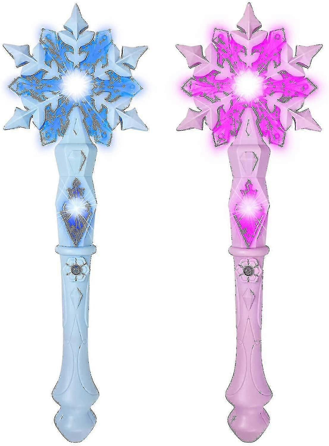 Light Up Frozen Snowflake Wand With Sound(motion Sensitive) Magic Toy For Kids Girls Princess Birthday Party Costume Accessories 2 Pieces
