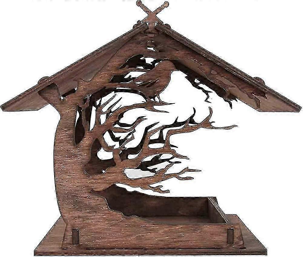 Bird Feeding Wooden House. Wooden Bird Feeder Wooden House. Bird Feeder Wood Bird