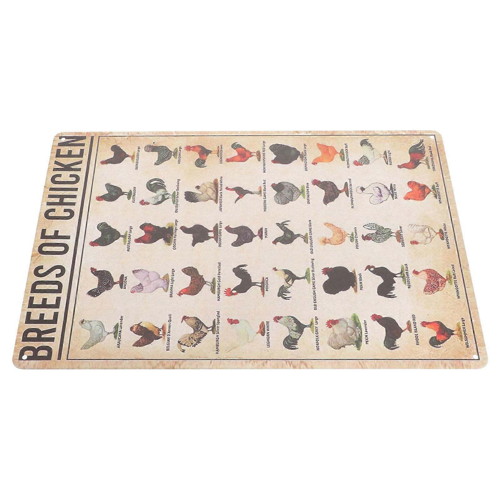 Transform your living space into a stylish one with the metal poster. Its vintage style can make the knowledge sign a perfect addition to any room. Sturdy materials, not easy to deform or break, can also let you know the chicken types, have good educational meaning. Features -Color:Assorted Color -Material:Metal -Size:30.00X20.00X0.20cm/11.79X7.86X0.08in -The retro wall sign adds charm to any space, suitable for living room, bedroom, bar, and more places. -Using sturdy materials, the wall knowledge poster will not easy to deform or break, can be used for long time. -Cleaning the metal sign is easy and requires only a damp cloth, bring you convenience, time and efforts saving. -The retro wall sign can be a perfect gift choice to give for almost any occasion, surprise your family or friends. -Not only decorative, but also of educational meaning, let you know the chicken types in a simpler way. Package list: 1 x vintage craft sign