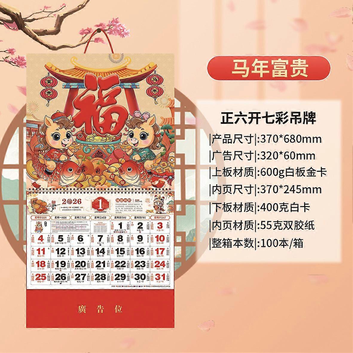 Chinese Wall Calendar: 2026 Year Of The Horse Hanging Calendar With Traditional Design Good Luck Zodiac Feng Shui Monthly Planner For Office Home