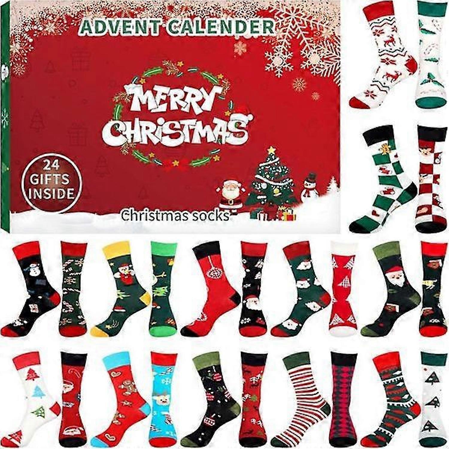 Advent calendar 2024 with socks - 24 days with different Christmas patterns for adults