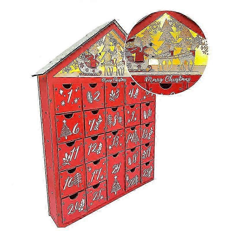 Christmas Wooden Advent Calendar With Led Light 24 Storage Drawers Christmas Countdown Calendar For Holiday Decoration