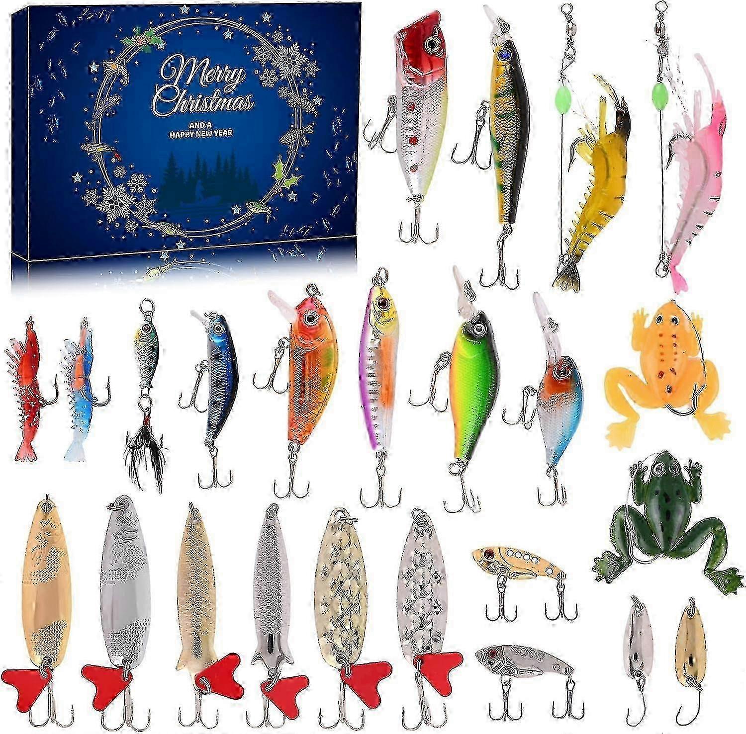 Christmas Countdown Advent Calendar - 24 Days - Fishing Lure Set For Adults Men Teens Boys - Christmas Surprise Gift 2023