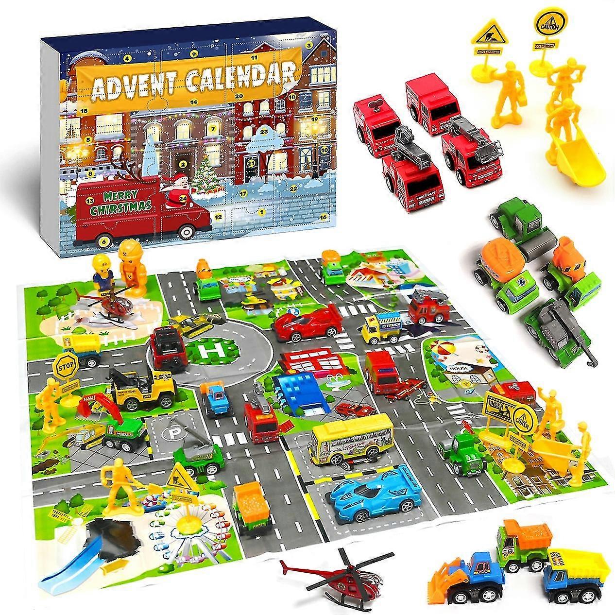 Cars Advent Calendar For Kids Boys 2022 Christmas, 24 Pull Back Vehicles Helicopter Construction Vehicles Fire Truck Car Countdo