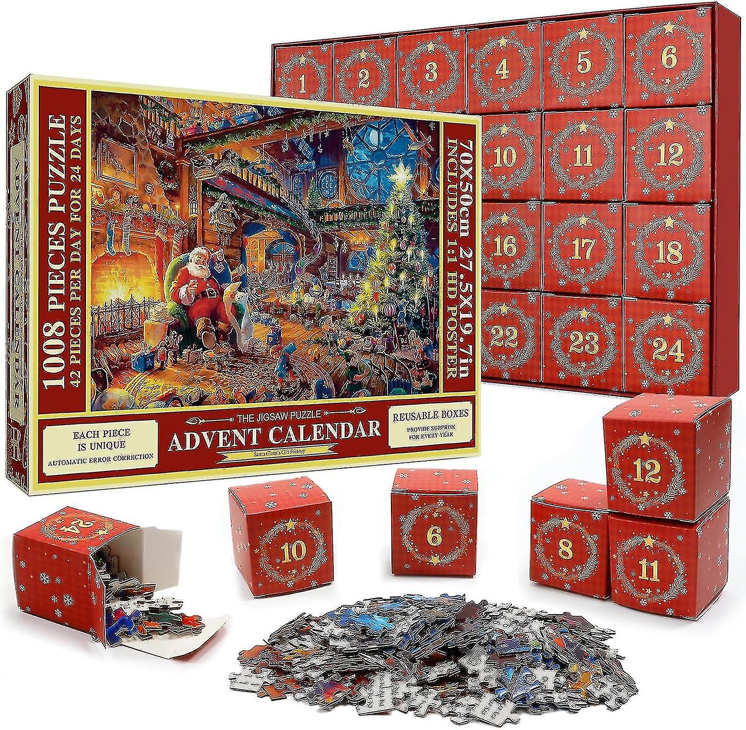 Puzzle Advent Calendar 2023, 1008 Pieces Puzzle 24 Days Christmas Countdown Advent Calendars, Christmas Gift Idea For Kids Adult