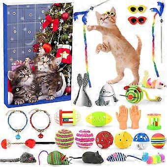 Cat Toys Advent Calendar 2022 Christmas, 24pcs Interactive Kitten Toys Cat Collars Assortments Cat Feather Teaser, Catnip Fish