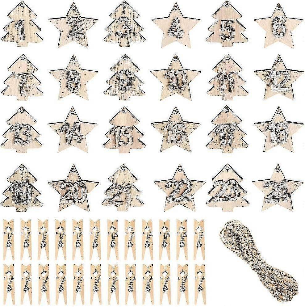 Wooden Advent Calendar with 24 Clips, Christmas Countdown Calendar Decorations & Tree Ornaments