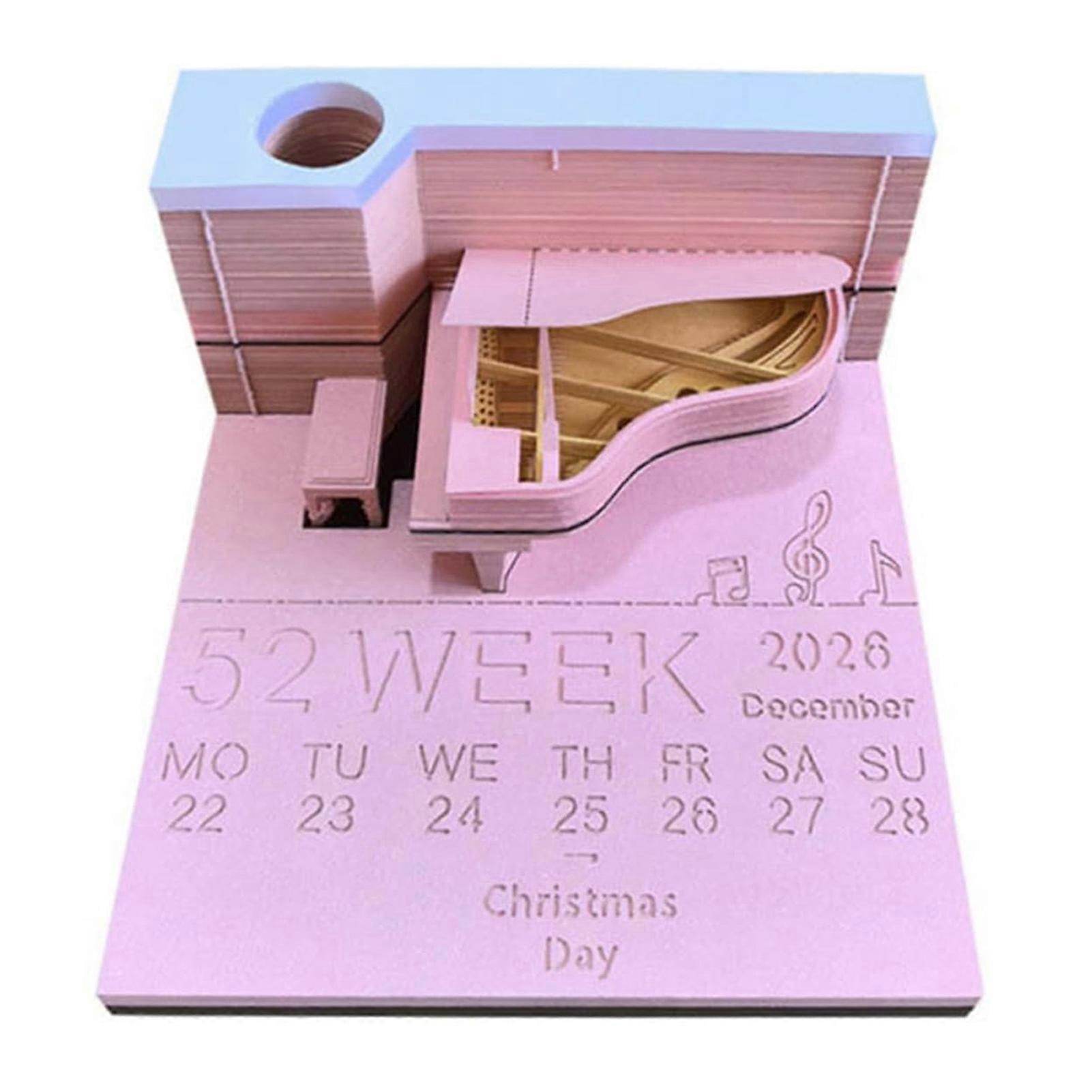 Unique 3D Piano Desk Calendar 2026 - Personalized DIY Art Memo Pad, Tear-Away Sticky Notes for Home & Office Decor
