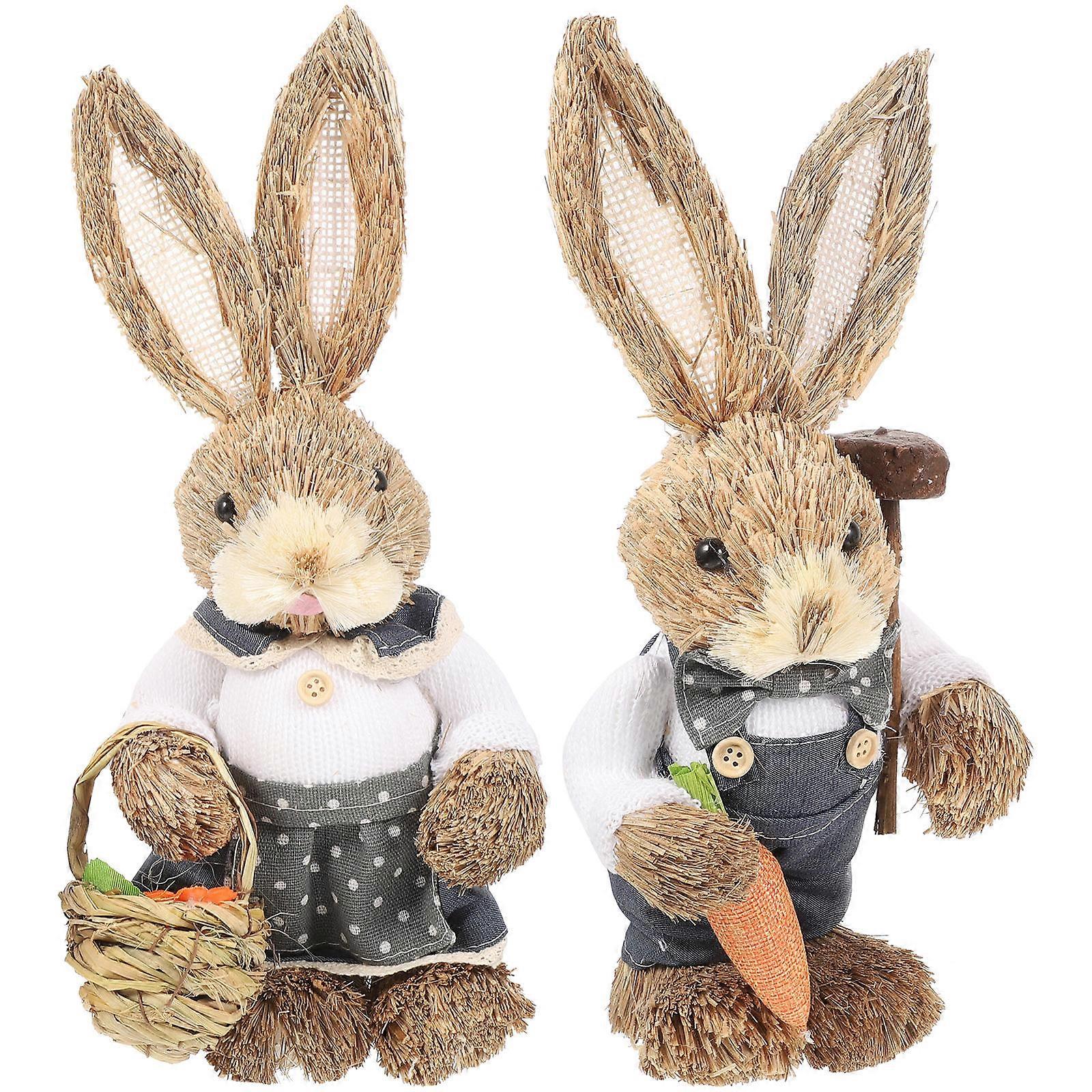 Bunny Figurines For Kids 2Pcs Hand Woven Rabbit Statues Unique Garden Decoration Assorted Color Design Ideal For Home Or Yard