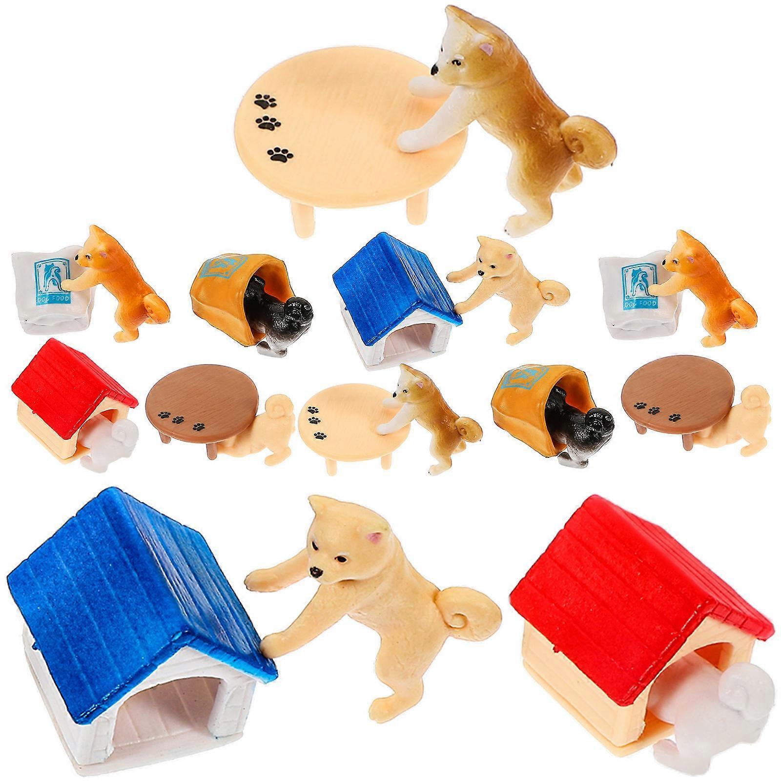 Small Dog Figurines Dog Kennel Ornament Garden Desktop Decor Pvc Material Waterproof 6Pcs