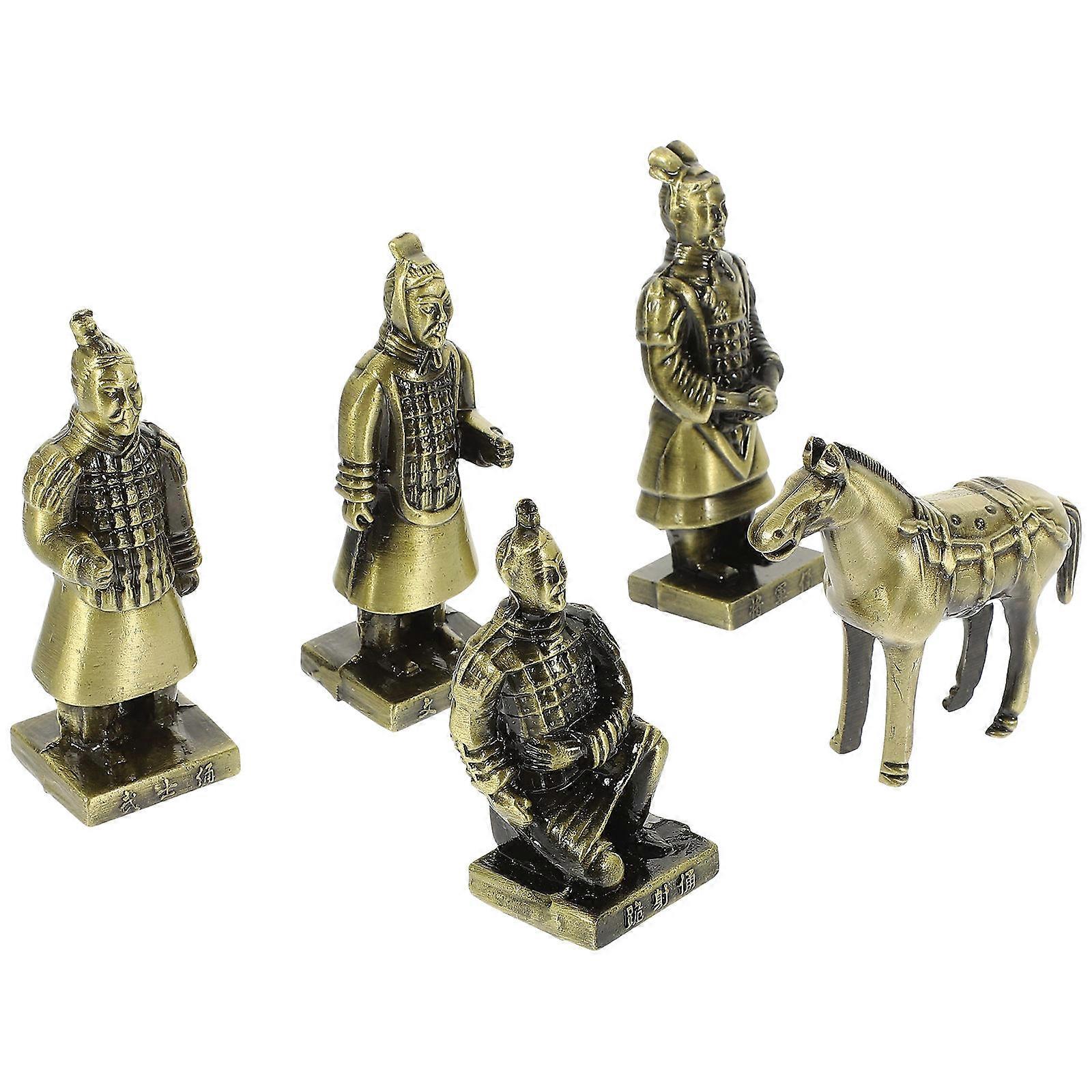 Terracotta Warriors Statues Alloy Figurine Set for Office Golden Decoration 5Pcs