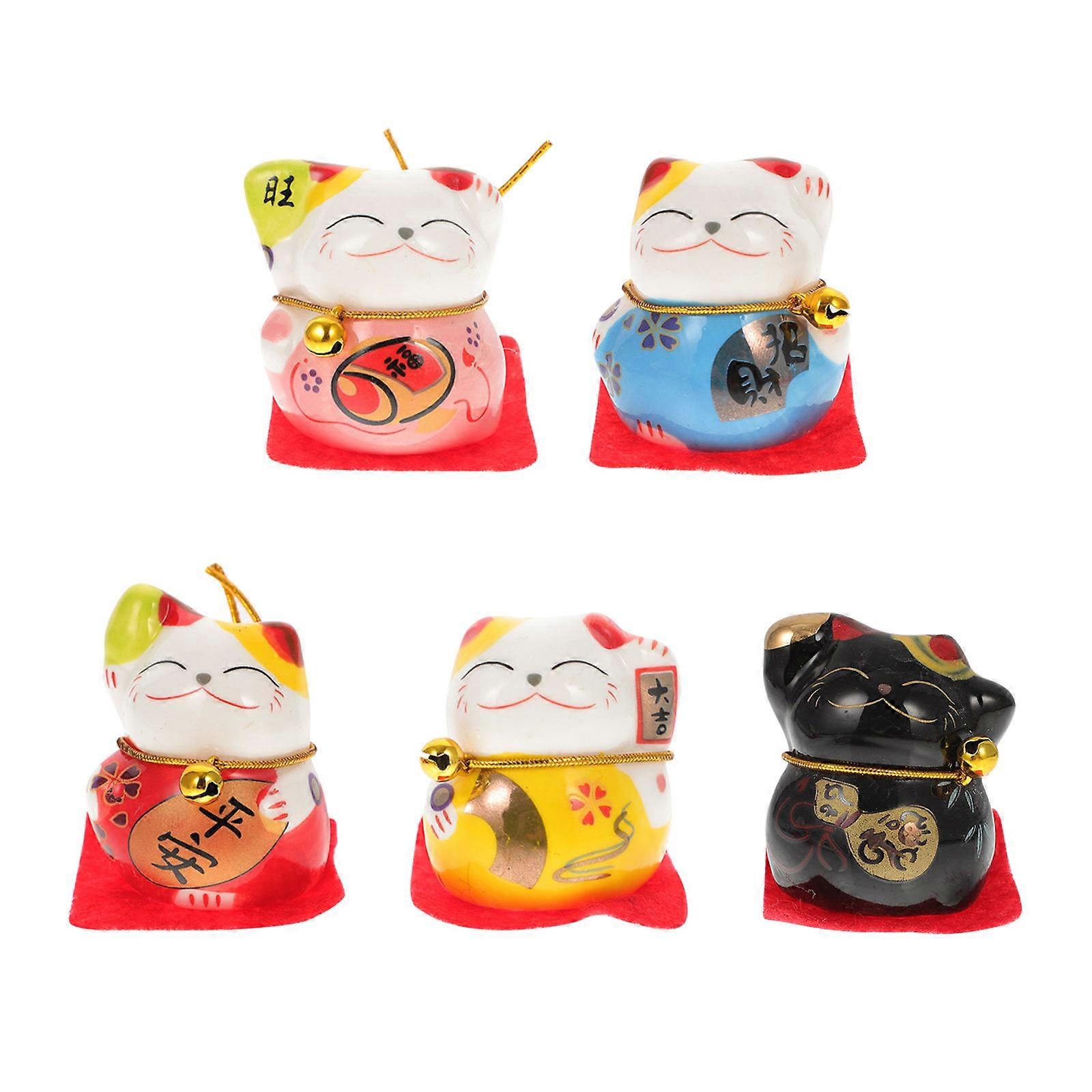 Cat Figurines Mini Mascot Cat Decoration for Car Interior 5Pcs