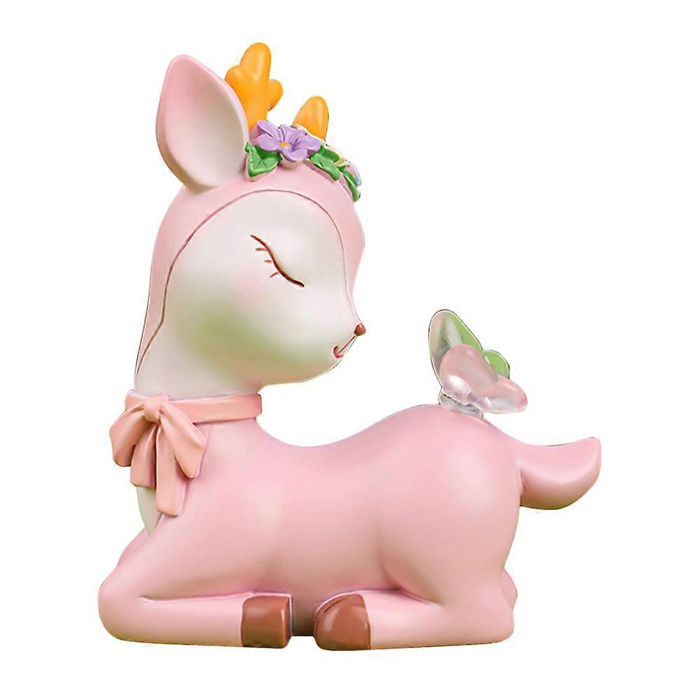 Animal Figurines Cartoon Deer Statue Home Decoration Pink 6.8X5.1CM Lively Design 1Set