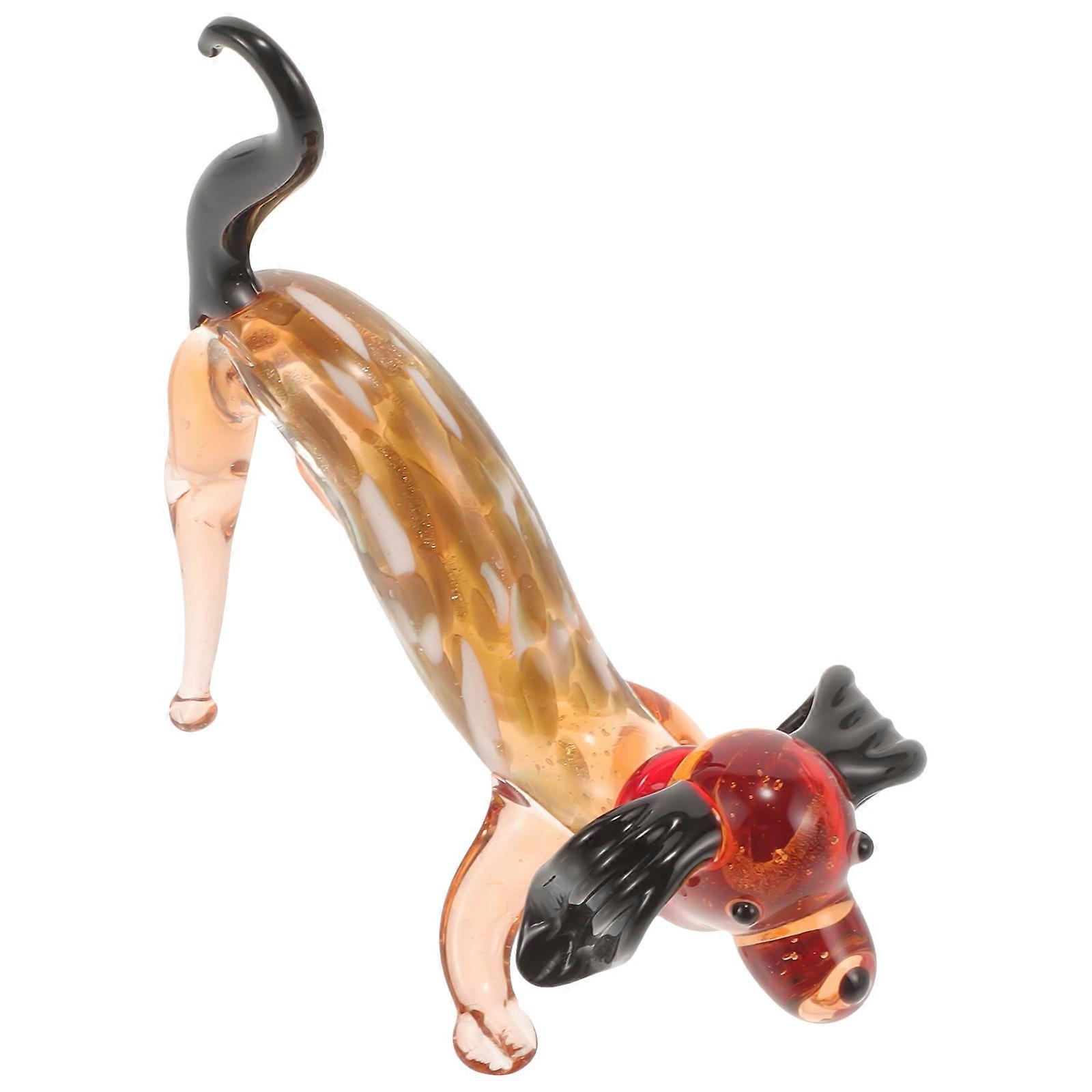 Miniature Glass Figurines Delicate Glass Dachshund Statue Home Desktop Pet Ornament 3.93X3.14X1.57in 1Pcs