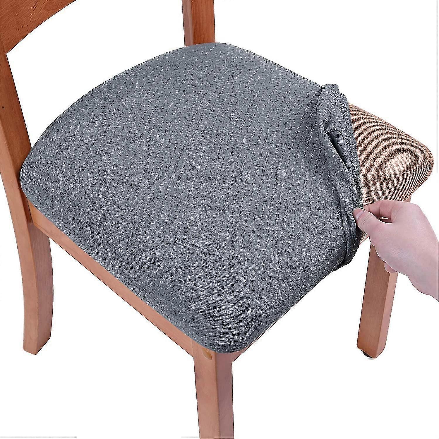 Stretch Jacquard Dining Chair Seat Covers, Removable Washable Anti-dust Dining Room Chair Seat Cushion Slipcovers With Ties- Set Of 6, Grey