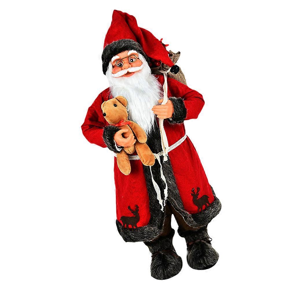 Bear Statue With Candy Bowl Santa Claus Ornament Home Decoration Christmas Enthusiasts Red Plastic 1Pc