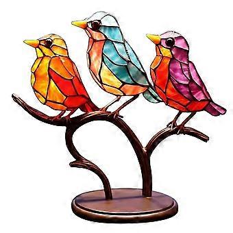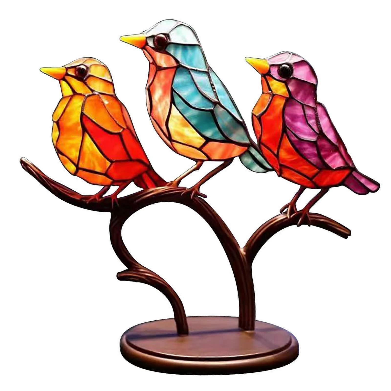 Stained Glass Birds Figurine,Metal Bird Sculpture Ornaments Decor