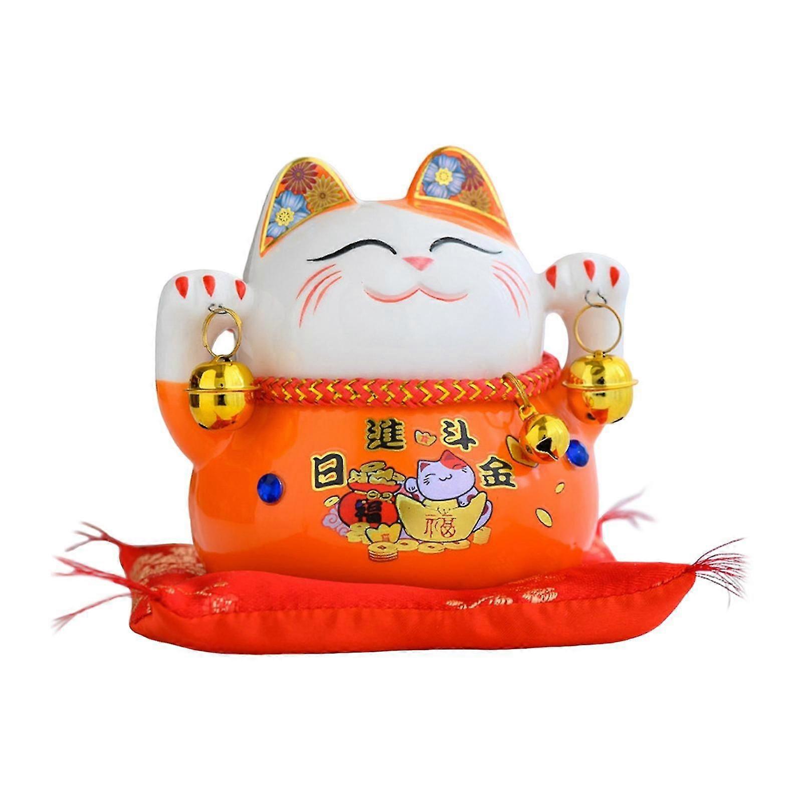 Lucky Cat Statue Piggy Bank Animal Sculpture For New Year Decoration Red