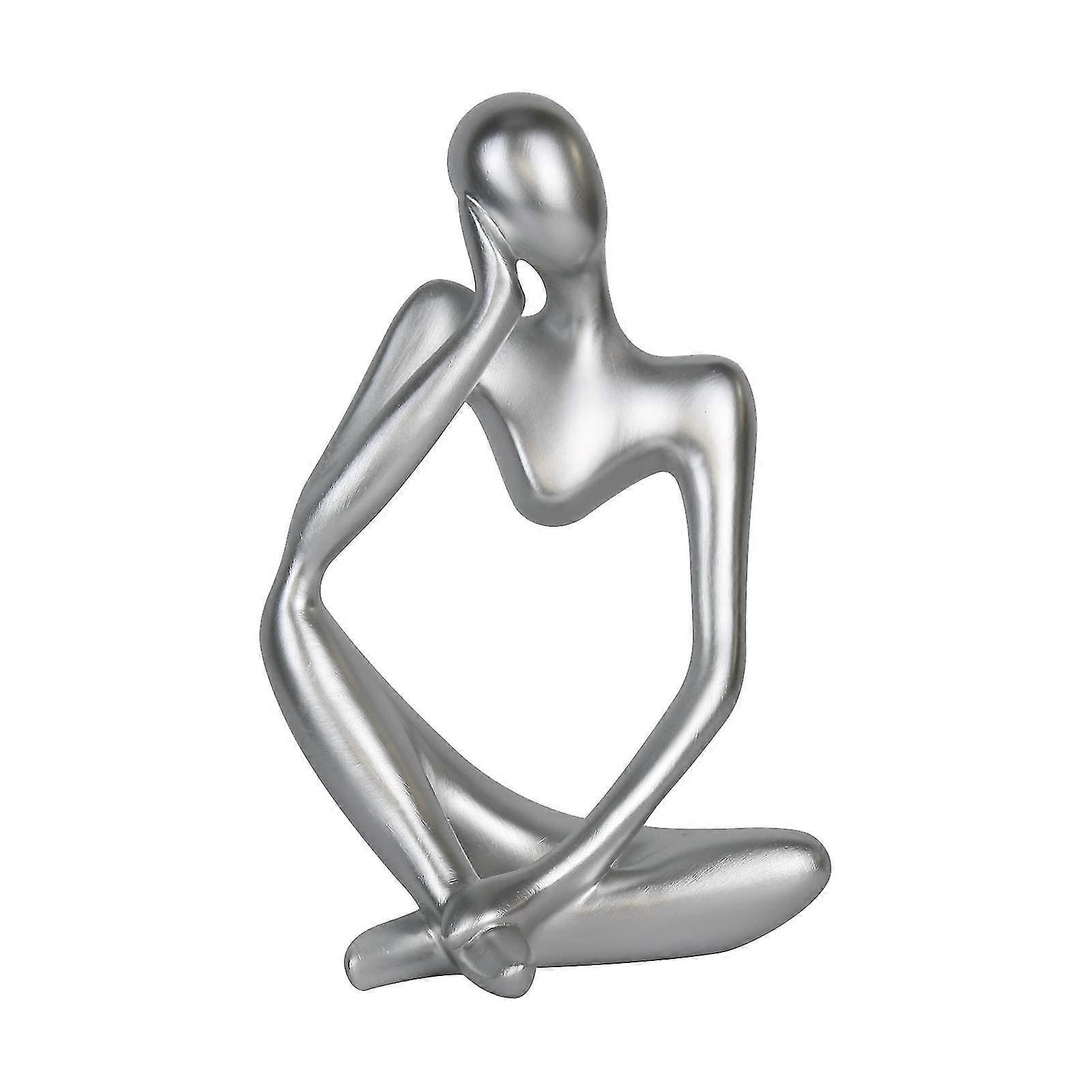 Thinker Statue Resin Abstract Sculpture Thinker Man Statue Collectible Figurines Art Home Office Table Desk Bookshelf Decor (silver, Left)