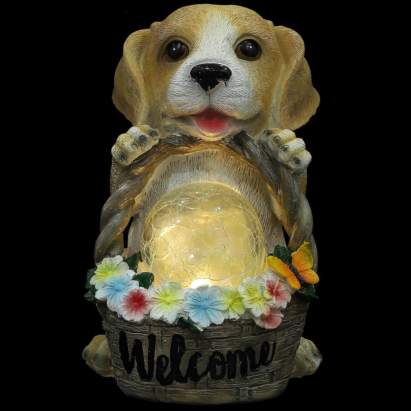 Solar Resin Garden Dog Statue, Weather Resistant Outdoor Decoration Landscape Ornament for Patio, Yard, Garden, Night Light