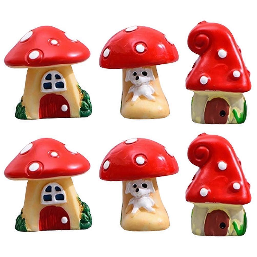 Mushroom House Garden Statue 6Pcs Cartoon Style Ornaments Durable Resin Lawn Decoration Micro Landscape