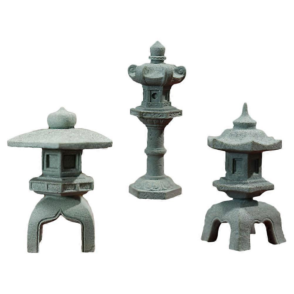 Small Statue Imitated Pavilion Decor Outdoor Garden Decoration Hexagonal Lantern Shape Dry Landscape Style 3Pcs